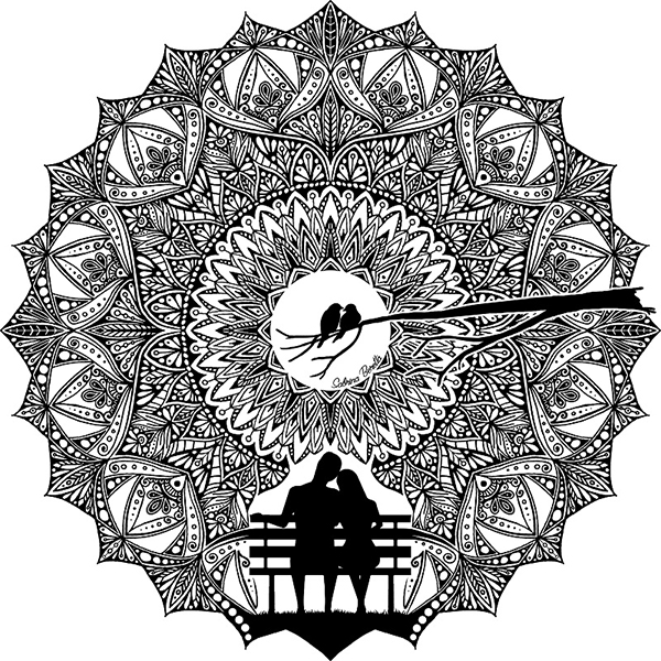 illustration Mandalas love : amoureux au clair de lune